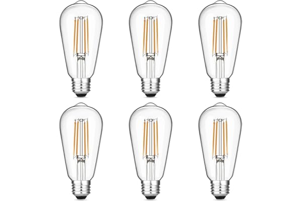 #1:Gozelux Vintage LED Edison Bulbs 6W, Equivalent 60W Incandescent, Warm White 2700K, ST58 Antique LED Filament Bulbs with 90+ CRI, E26 Medium Base,Dimmable, Clear Glass, Pack of 6