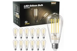 #1:TJOY 12 Pack Vintage 8W ST58 LED Edison Light Bulbs, Dimmable, 60W Equivalent, 800Lumens, 2700K Warm White, E26 Base LED Filament Bulb, CRI80+, Antique Glass Style for Home, Bedroom, Office, Farmhouse