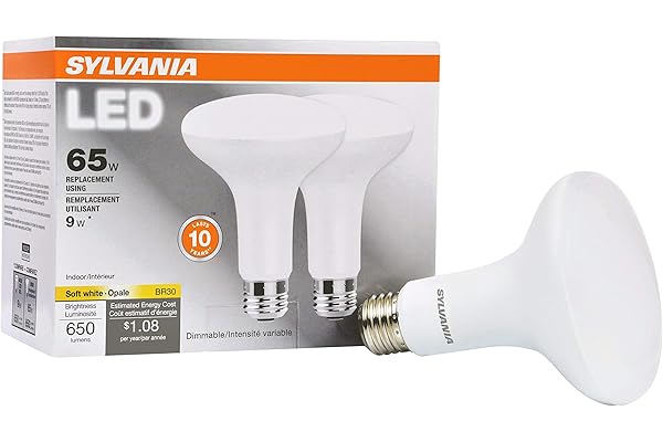 #1:SYLVANIA LED Flood BR30 Light Bulb, 65W Equivalent Efficient 9W, 10 Year, 650 Lumens, Dimmable, 2700K, Soft White - 2 pack (73954)